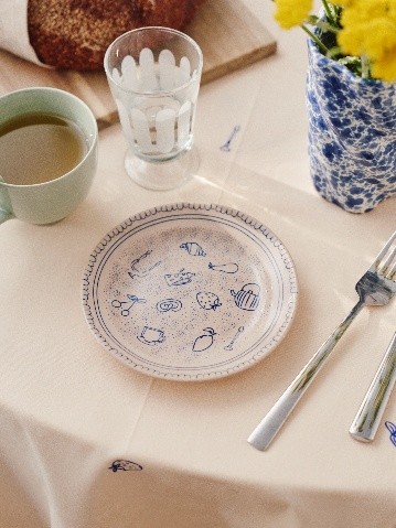 Kollektionen henter inspiration i naturens bløde rytmer og antikkens arkitektoniske elegance – fra sandklitternes kurver og havets bevægelser til søjleformernes klassiske udtryk, der har fået et nutidigt præg i glas, træ og keramik. Samtidig introduceres firkanten som et gennemgående designelement sammen med håndtegnede illustrationer og detaljer i fine farver, der tilsammen skaber et personligt og moderne udtryk.