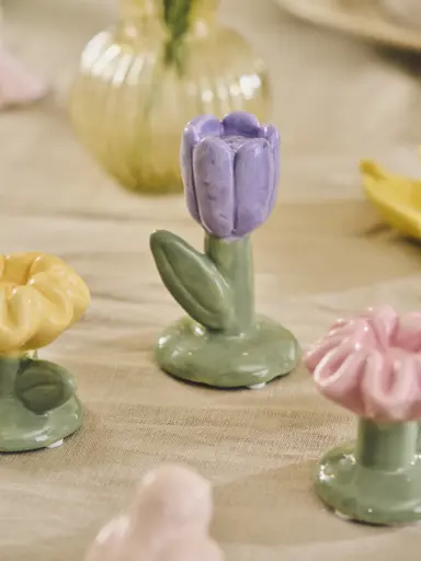 This year’s Easter collection offers a range of new arrivals inspired by familiar Easter figures and spring’s varied flowers: discover, amongst other things, vases with embossed floral details, ceramic tulip reliefs, candleholders shaped like flower stems, and hanging decorations with embroidery and paper-cut elements. You will also find new versions of Easter eggs in everything from glass, wood and fabric to porcelain and ceramic – including those designed to hide the season’s sweet treats.